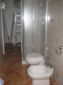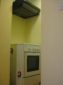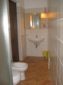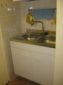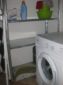 Kitchenette with gas stove and sink with two steel tanks, a large bathroom with shower, utility room with washing machine.